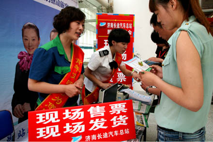 二是暑期臨近,總站學子售票隊率先進駐山東力明學院、山東聯合大學等省城各大中專院校,為在校學子提供現場售票的便利服務,下一步總站還將陸續(xù)進駐濟南市區(qū)及長清、章丘的30余所大中專院校,為學子提供現場咨詢、提前二十天預售客票的服務,開通“門到門學子直通車”,實行現場發(fā)車。
