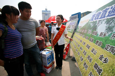 三是麥收時節(jié),對“麥客”比較集中的安徽阜陽、臨泉,河南周口、鄲城,省內魯西南地區(qū)的菏澤、曹縣、鄆城以及臨沂、聊城、濟寧等地區(qū)的五十余線路發(fā)車頻率進行了加密,全面開辟“麥客返鄉(xiāng)綠色通道”和“麥收直通車”,向他們提供優(yōu)先購票、優(yōu)先檢票、優(yōu)先乘車,以及“門到門”的便利服務。